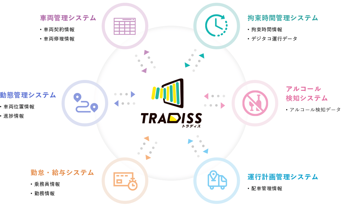 今後、アルコール検知システム、勤怠・給与システム、長距離の運行計画管理システムなどと連携予定です。 システム連携によるDX化で、さらなる業務の効率化・生産性向上を期待できます。